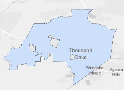 Description: The data layer is depicted through the use of a polygon shape as it demarcates the official extents/limits of the City of Thousand Oaks. Data is used citywide and does not have any topology.