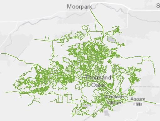 Description: Data is used citywide and does not participate in any topology. Data is shown through the use of polyline features as displayed on the map. This data is used to display centerlines throughout the City of Thousand Oaks and other nearby cities and/or areas found within the map.